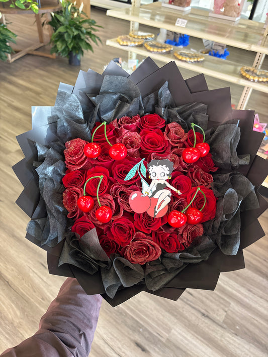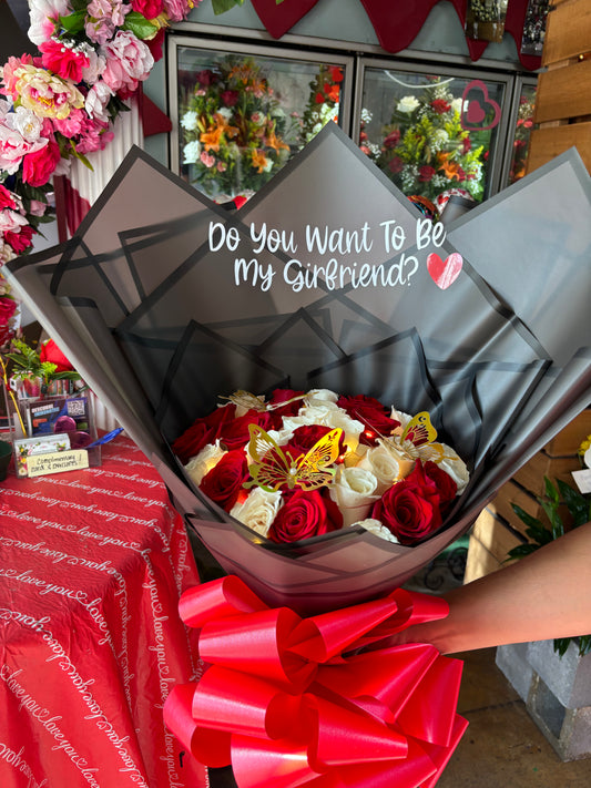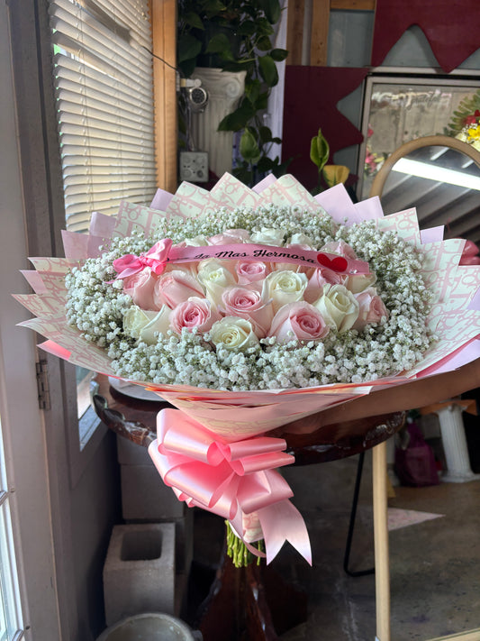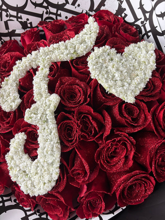 50 Red roses with Initial babysbreath Letter โฅ๏ธ