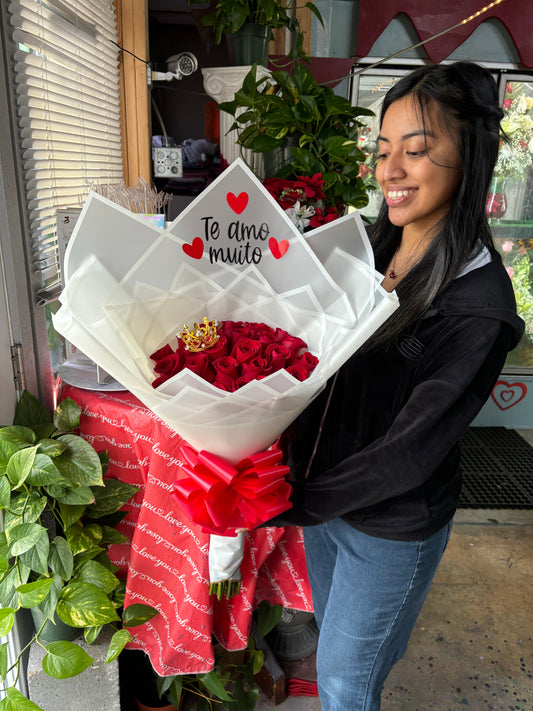 75 Red Ecuadorian roses + initial โค๏ธ