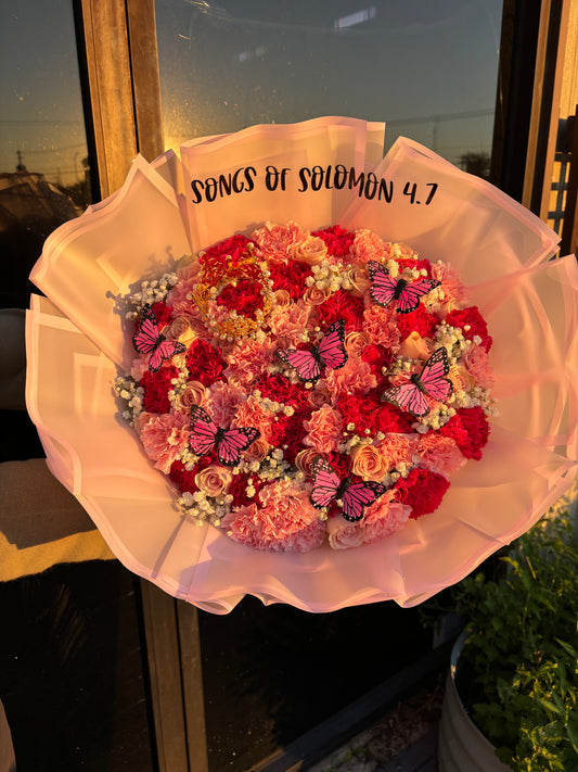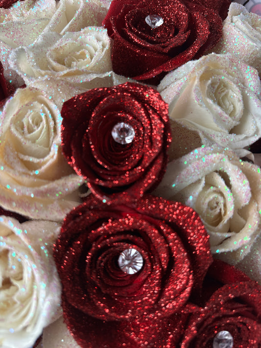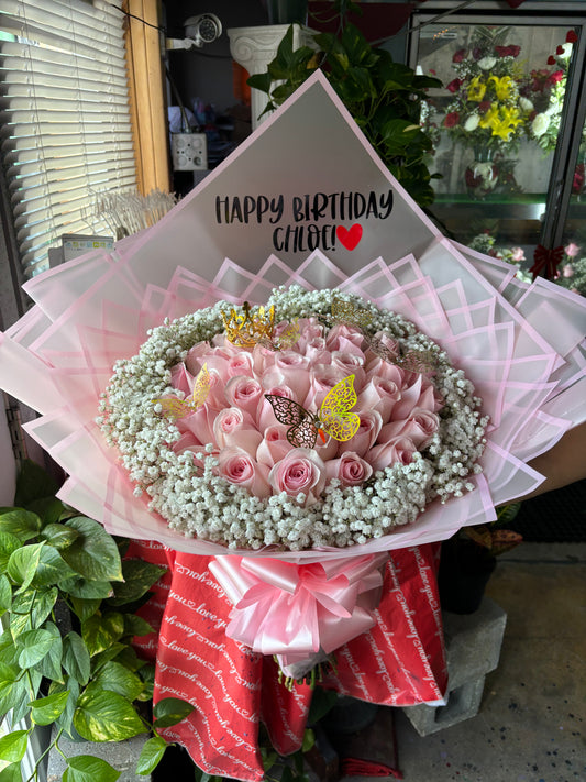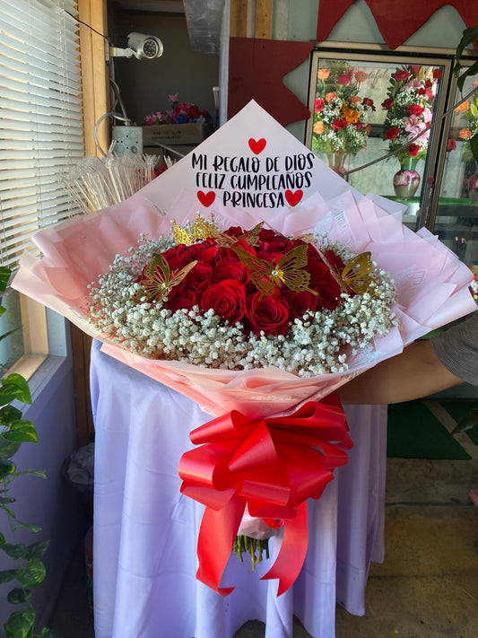 36 Red Rose with babysbreath rim & mini crown|Butterflies❤️