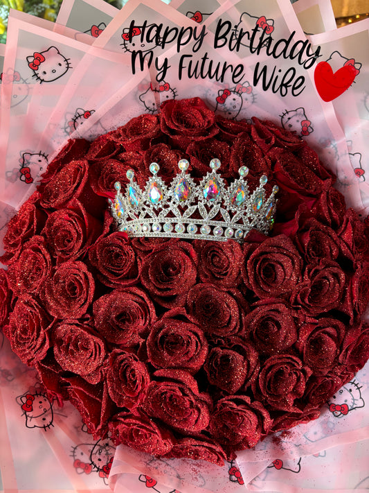 50 Red glitter roses for my queen 🌹