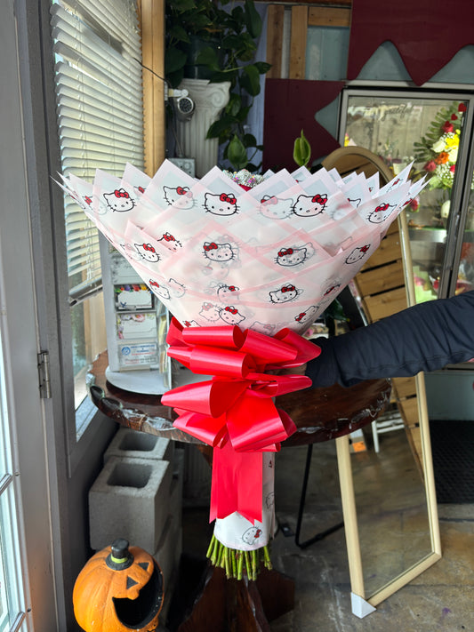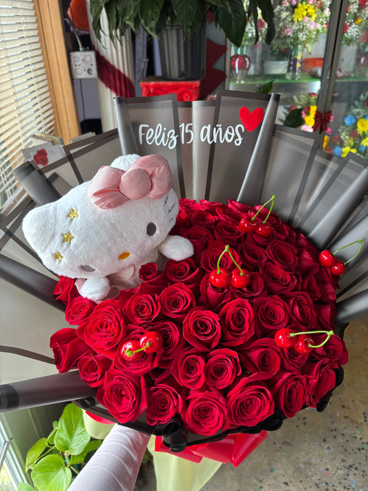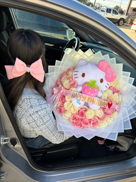 50 pinks , babysbreath rim, & hello kitty plush 🎀