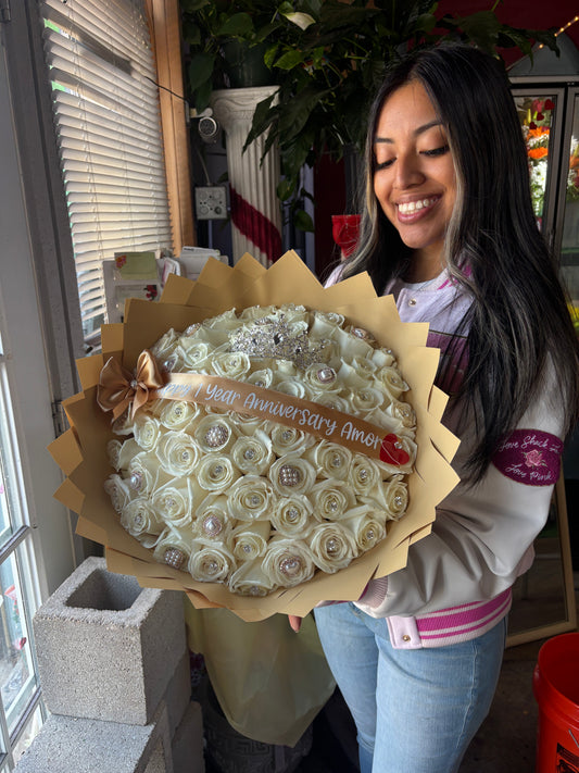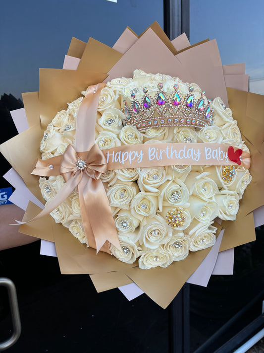 50 soft white roses with golden add ons✨