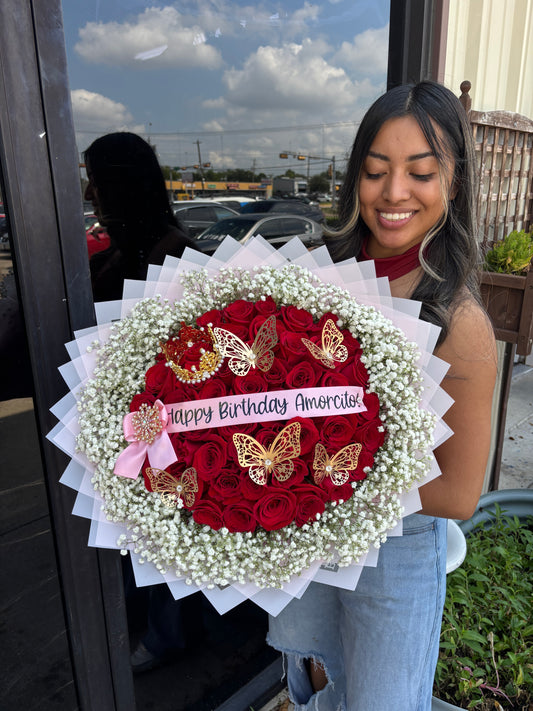 50 Finest Red Roses with babysbreath rim❤️