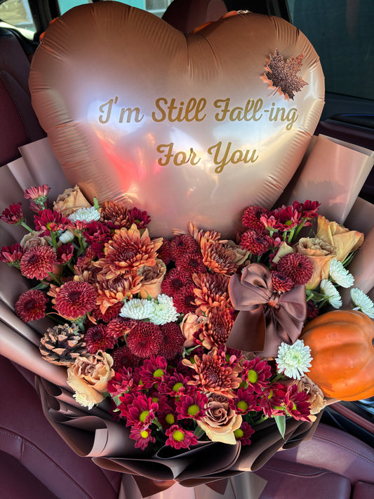 I’m falling for you 🍂🤎 Balloon + flower bouquet