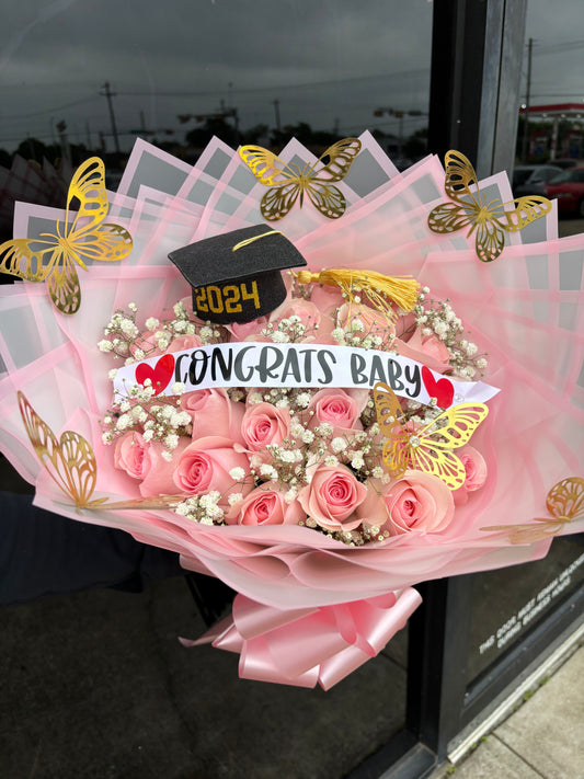 Aesthetic Flat 24 rose + Large Grad Plushy🎓