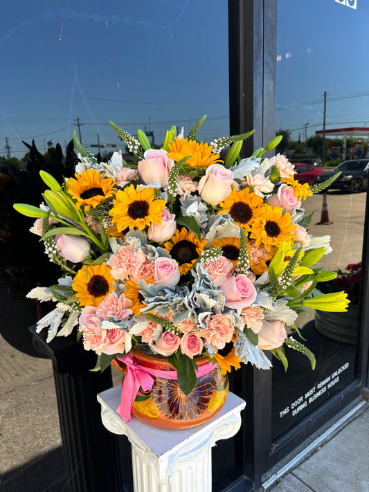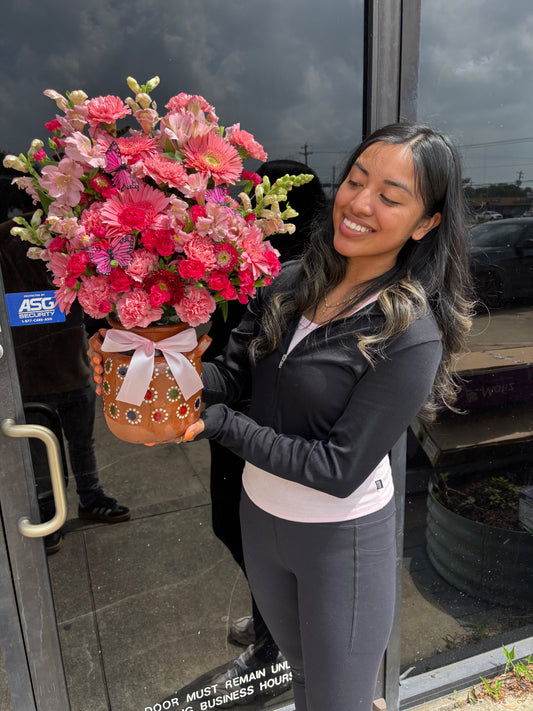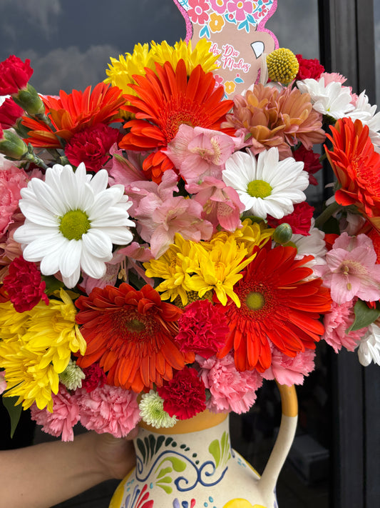 Jarron Barro Vase + Mix colorful flowers π§‘